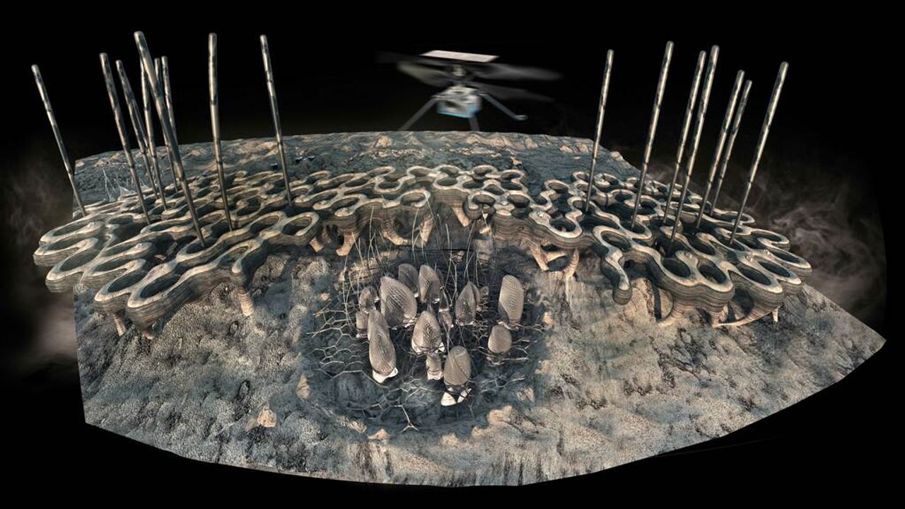 The Mars agricultural units are assembled into a circular formation of a used pit crater, surrounded by the modular units to facilitate access by sub-terrestrial units. The agricultural land covering the crater will be the first Martian outdoor park, visible from all the surface units raised by tiny windows and accessible by the sub-terrestrial units.