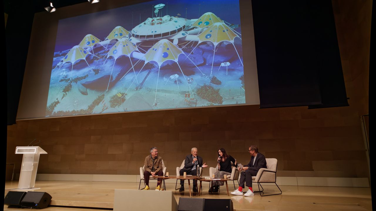 Il a notamment présenté les projets concrets et visionnaires des jeunes architectes qui ont participé à travers le monde aux concours de sa Fondation.