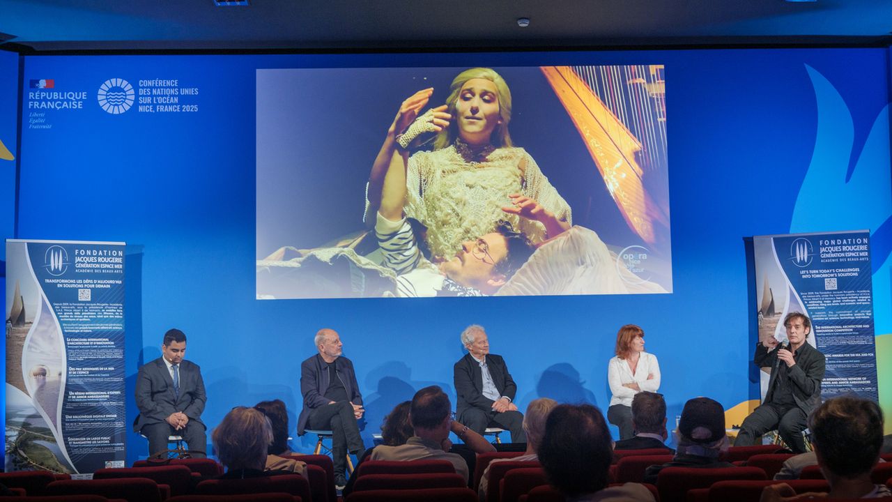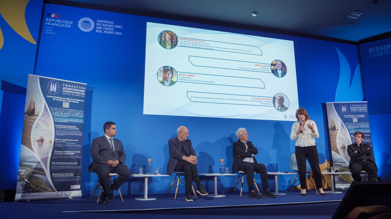 Le 4 juin 2025, à l’occasion de la Conférence des Nations Unies sur l’Océan (UNOC), un moment d’exception s’est tenu dans l’enceinte de la Baleine : pour la première fois, quatre membres de l’Académie des beaux-arts ont été réunis autour d’un dialogue public consacré à l’Océan.