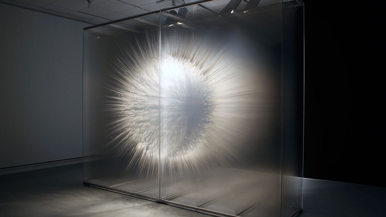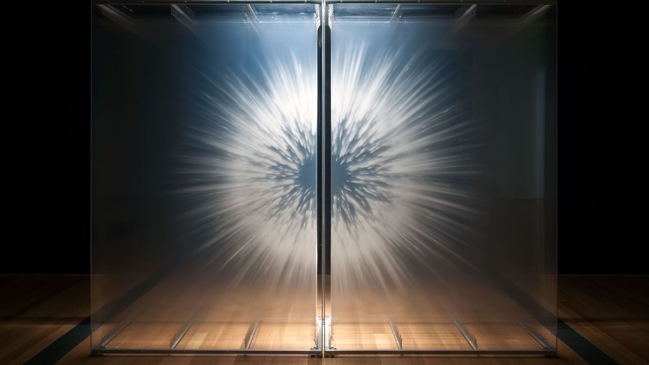La série Vision (2010) incarne pleinement cette recherche. Présentée notamment à la Biennale de Marseille, au Sharjah Art Museum, au Grand Rapids Art Museum ou encore à Montréal, cette installation immersive plonge le spectateur au cœur d’un événement perceptif d’ampleur monumentale. L’œuvre donne l’impression d’assister à une forme en devenir, tout en observant simultanément sa désintégration, évoquant un phénomène cosmique proche du Big Bang.
