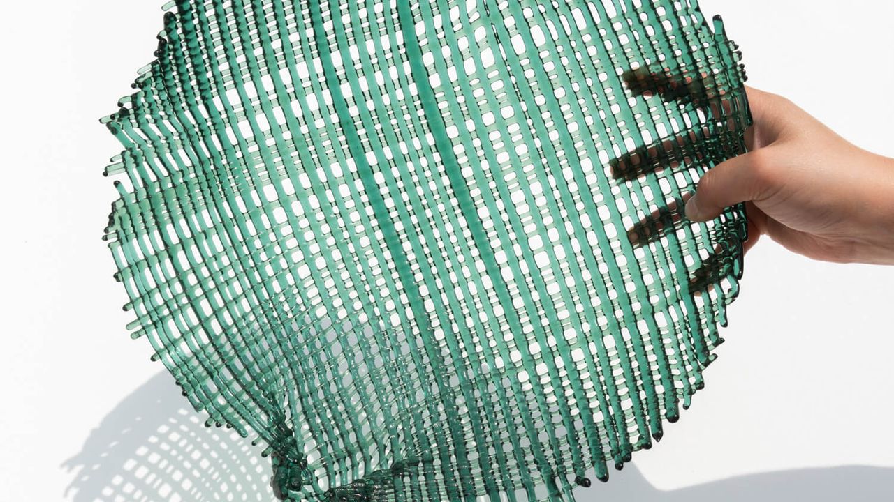 Naturellement coloré, micro-bullé et malléable, le verre marin Glaz est le premier verre développé par l’Atelier Lucile Viaud pouvant être travaillé selon l’ensemble des techniques verrières traditionnelles. Dix-huit mois de recherche ont été nécessaires pour mettre au point une formulation de qualité, donnant naissance à une matière vivante, traversée de stries, de cordes et de microbulles, dont les reflets varient du vert au bleu selon les saisons et la lumière.