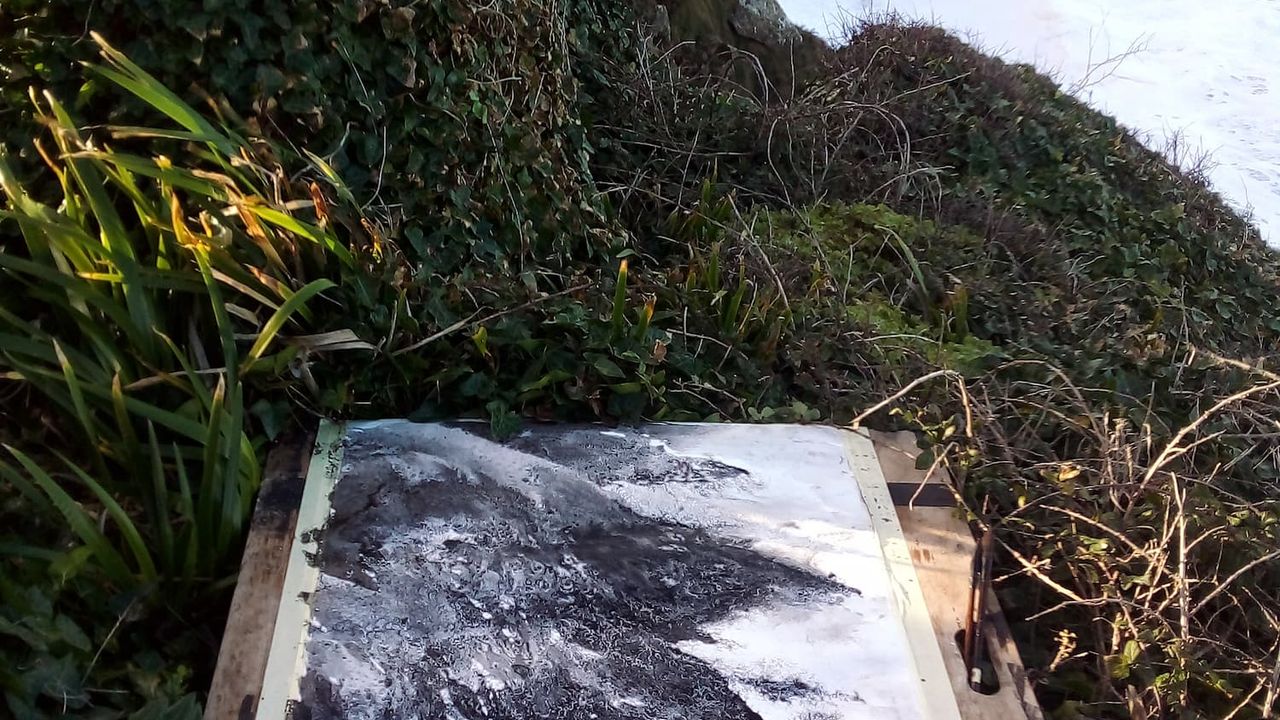 Mis à l’épreuve des terrains, ses dessins explorent les réactions entre l’encre de chine, l’eau et le sel sur le papier. Dessiner au plus près de la marée montante, à la nuit tombante, sous la pluie, plonger les dessins dans la mer ou sous une cascade : les contraintes du plein air activent des choix radicaux, les mouvements naturels font irruption dans les œuvres et bouleversent les tracés.
